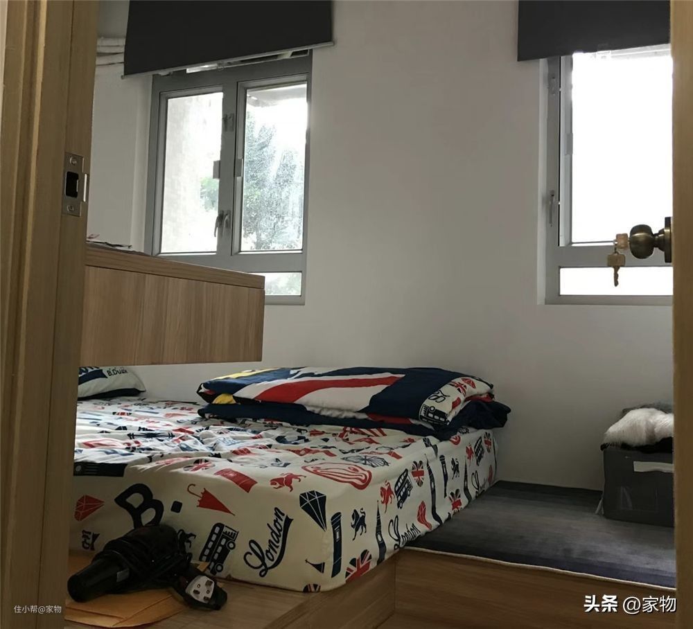 而次卧室的面积,刚刚好容纳下一组上下铺,目测也就2㎡多一点的样子,下铺用来当做客卧(目前没孩子),家人朋友来可以临时休息,上铺则主要用来收纳一些杂物,空间利用也是绝了。