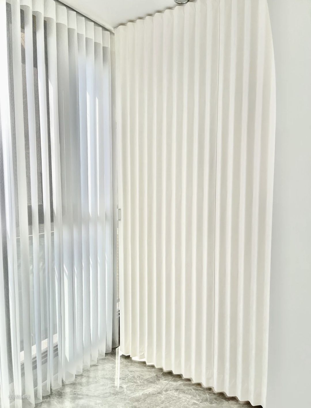 不仅是洗衣区,如果你想甚至还可以把连着晾晒区一块,给隔出来,让可见区域,最大限度的整洁,相当于是专门在阳台隔出来了一个洗衣房。