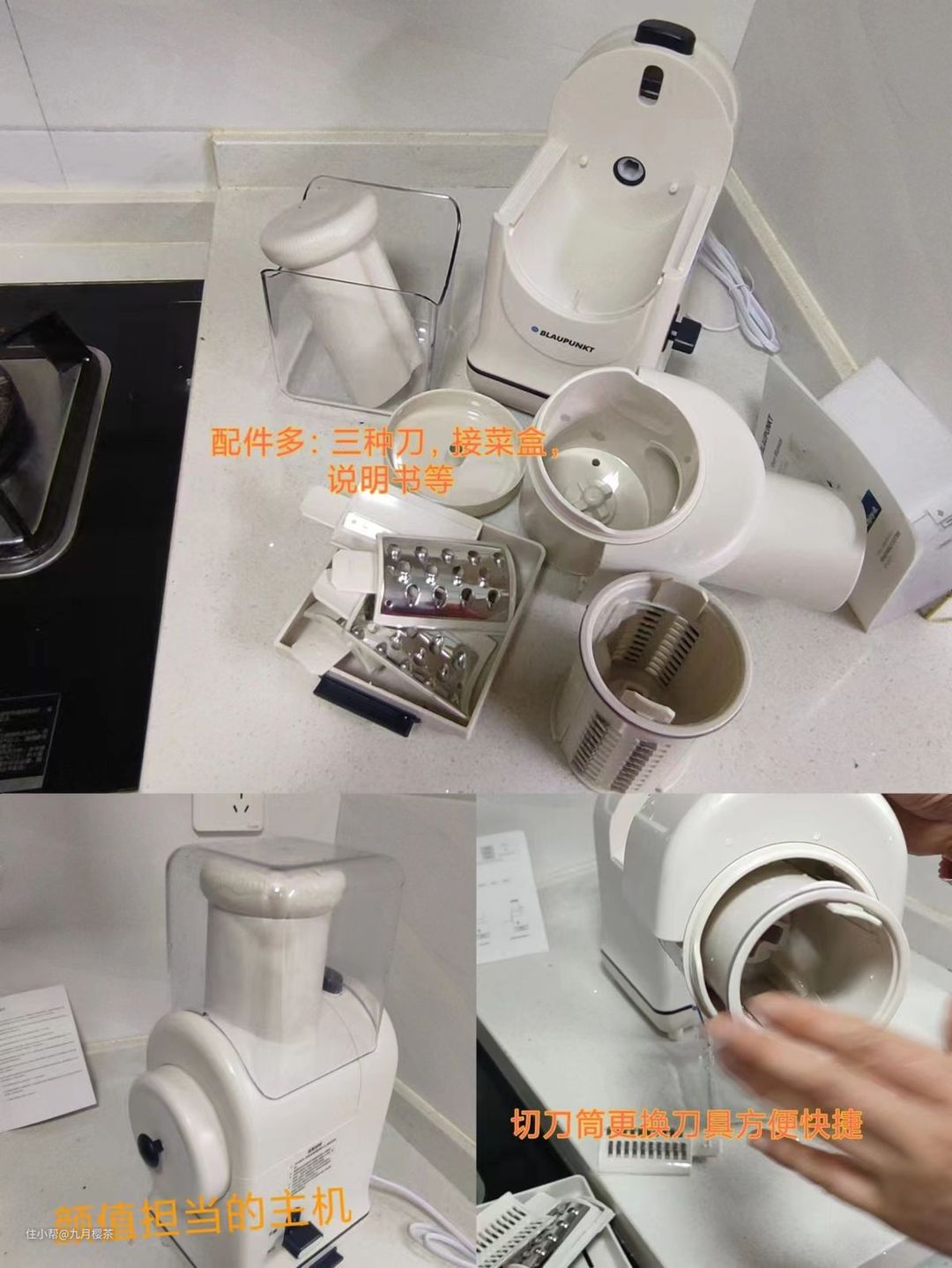 配件都能分别拆卸,安装、清洗方便,拿我做的花生碎来说,切菜筒上满是碎粒,但是用水一冲就干干净净。没有残留,再也不担心留下残渣,时间久了,变成污垢难清理了。
