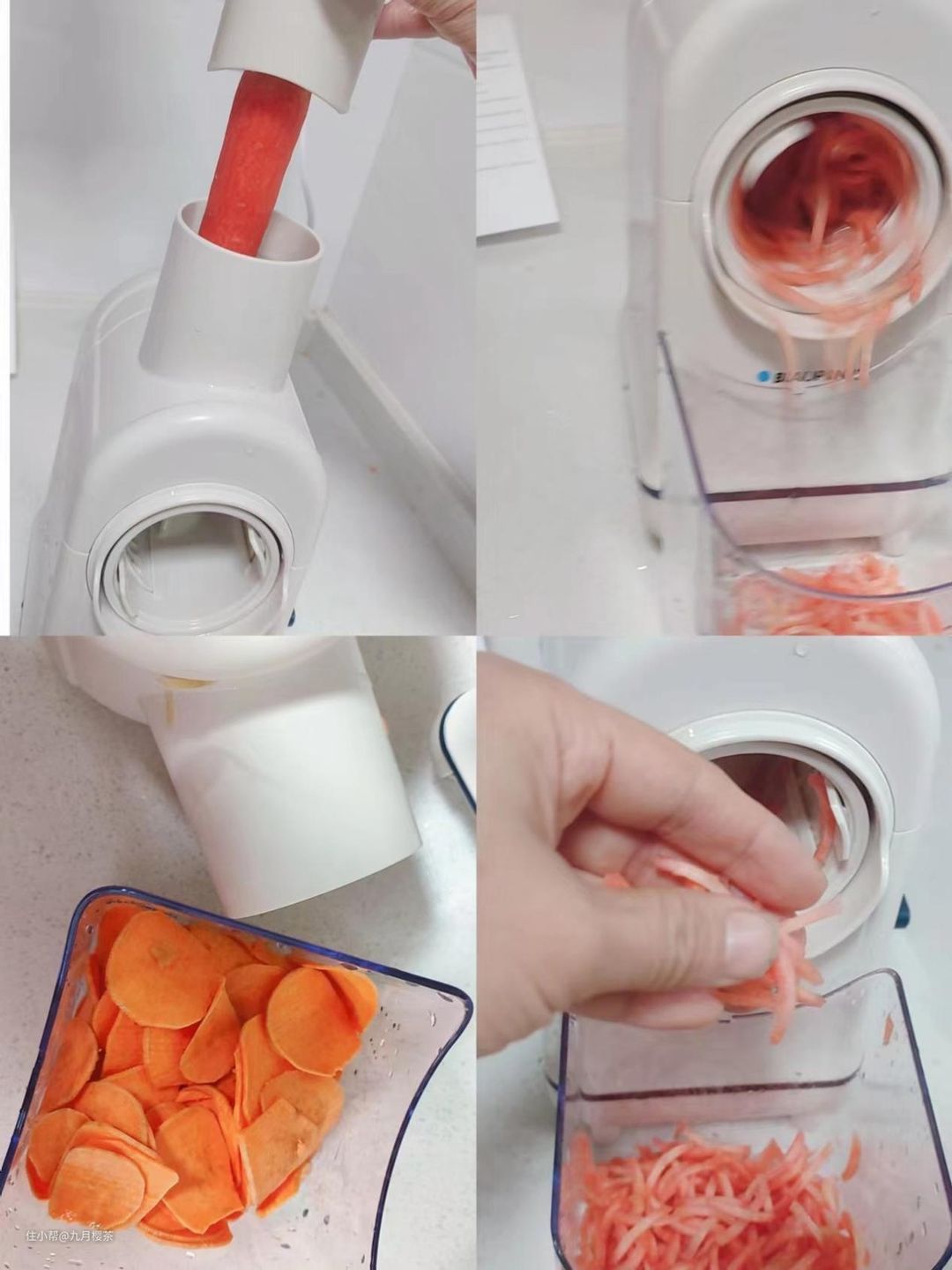 蓝宝自动切菜机真的真的超级超级好用,开机即出丝,可以更换各种刀片:切粗丝、切细丝,切片,切碎,真正的解放双手。