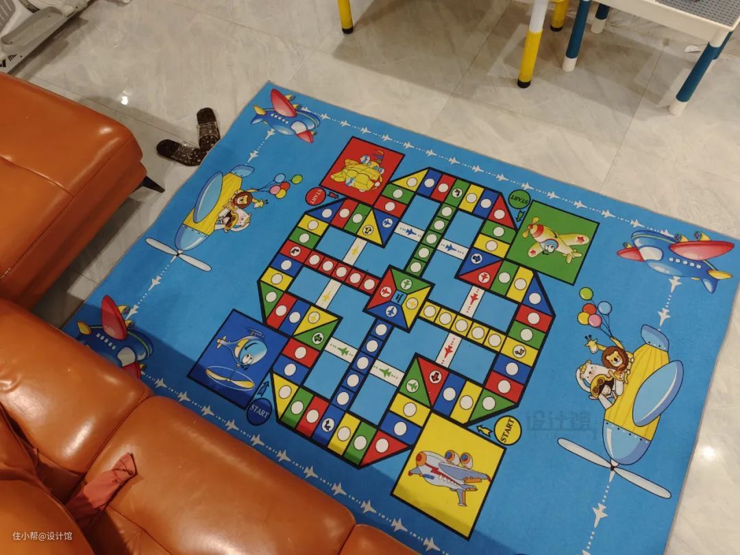客厅中间腾空后,对有娃的家庭而言,最简单实用的方案就是中间铺一席地毯,孩子坐在地毯上玩玩具、做亲子互动,都是舒适无比。