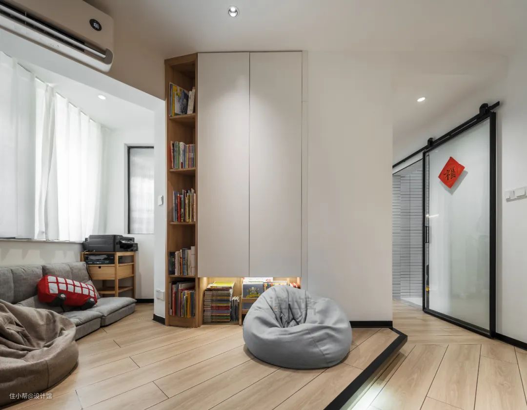装修转变一下思维,取消客厅的茶几或电视柜(也就是所谓的「去客厅化」),把客厅格局打开,以家人的需求为设计中心,就能拥有一个宽敞舒适的空间了。