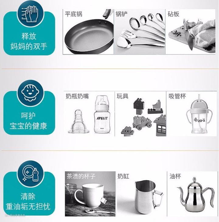 特别是中餐又重油,黏黏的餐具洗起来很费劲,长时间弯腰洗碗又累腰,不利于身体健康。