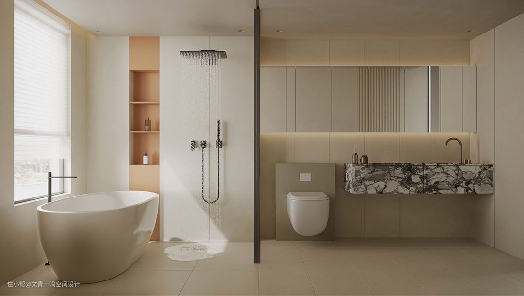 浴室是一个干净的白色空间,带有别致的简约本质。