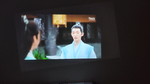 没有对比就没有伤害,有了对比才能知道好坏,刚好我邻居有一台投影仪,同时播放对比,左边的是大眼橙X6,右边是邻居的投影仪,从下面的对比可以看出大眼橙X6在画质、清晰度、亮度方面表现得好很多,颜色的饱和度要高,大眼橙X6观影效果更舒适。