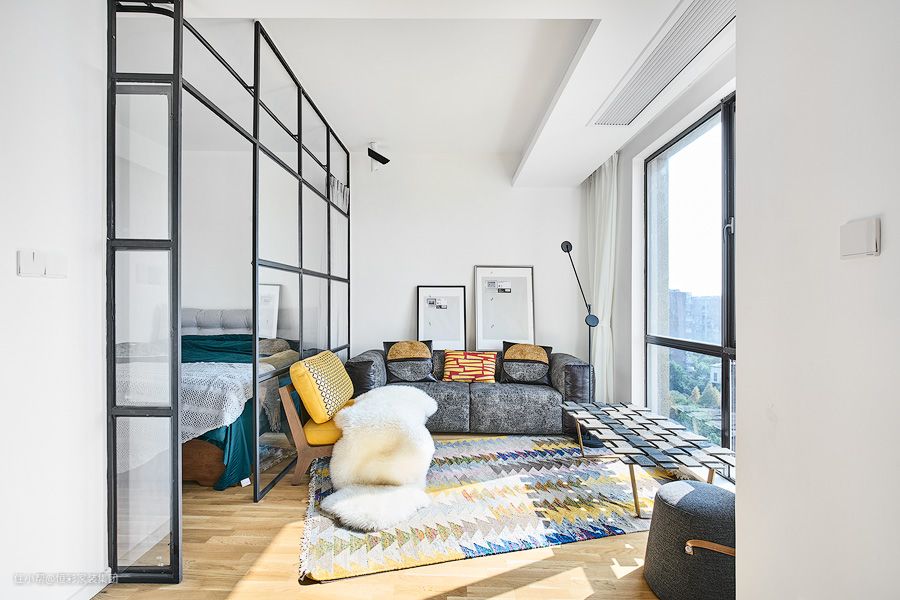 • 无主灯设计让客厅采光不够优越,客厅阳台玻璃门阻碍空间通透感;