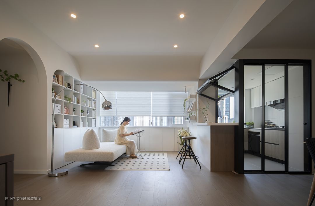 ★ 敲掉客厅与房间隔墙,筑半高吧台隔出阅读休闲区