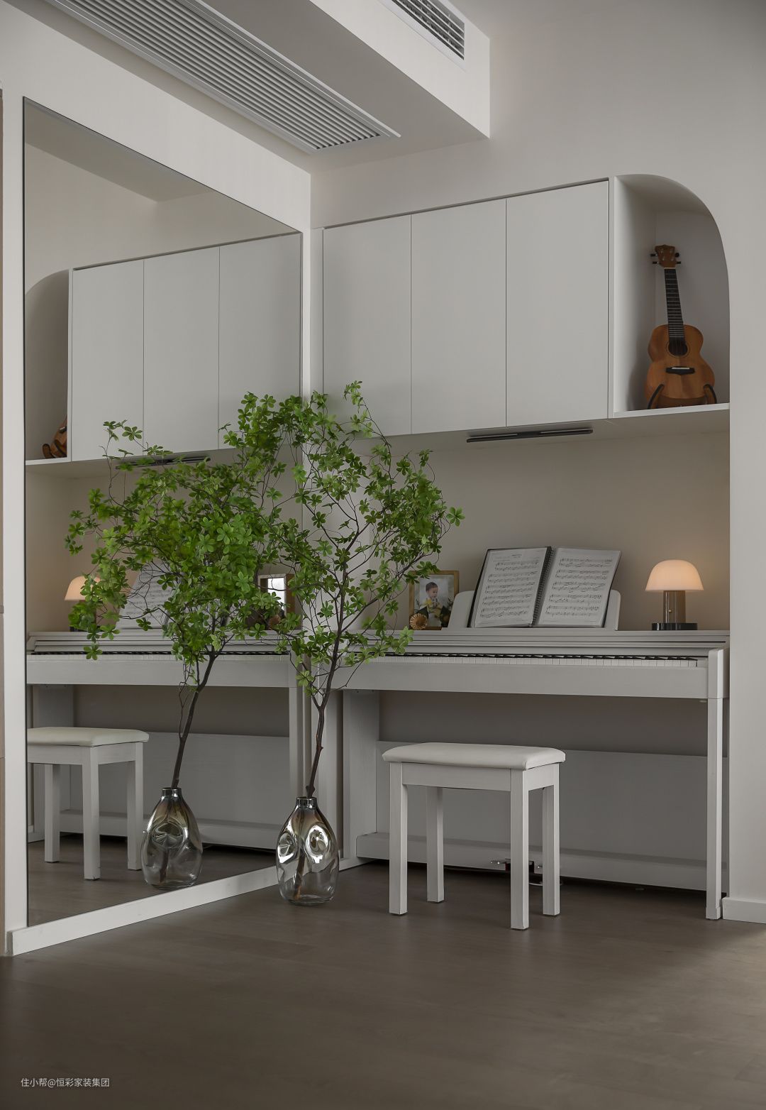 • 客厅灵活多变,收纳充足,设立独立钢琴区,打造了一个多元化生活空间。