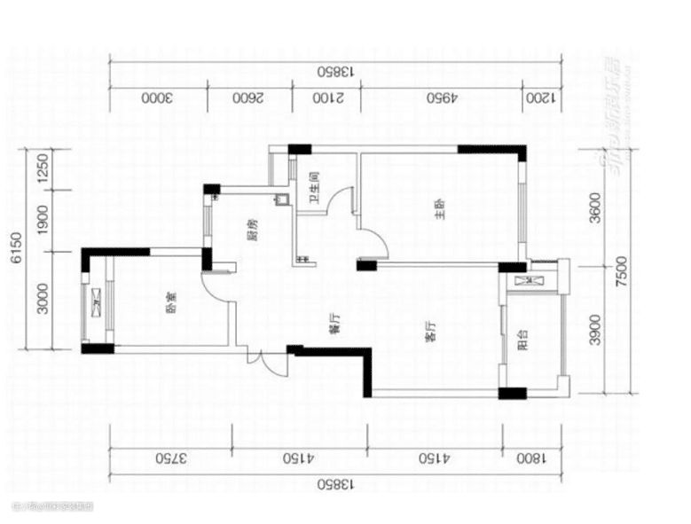 • 客厅空间方正为封闭式空间,缺少互动性与空间通透感;