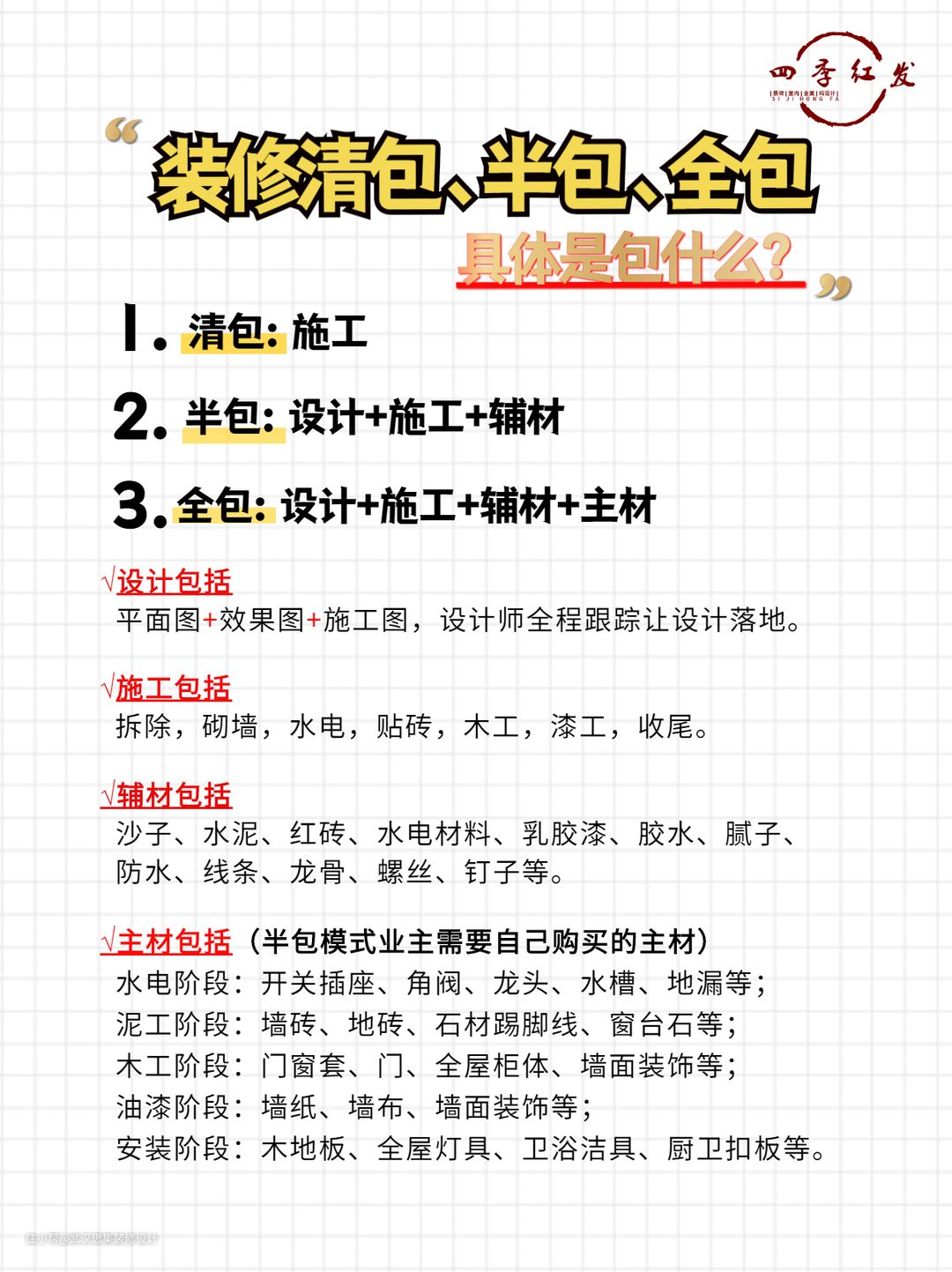 装修清包、半包、全包具体包什么?