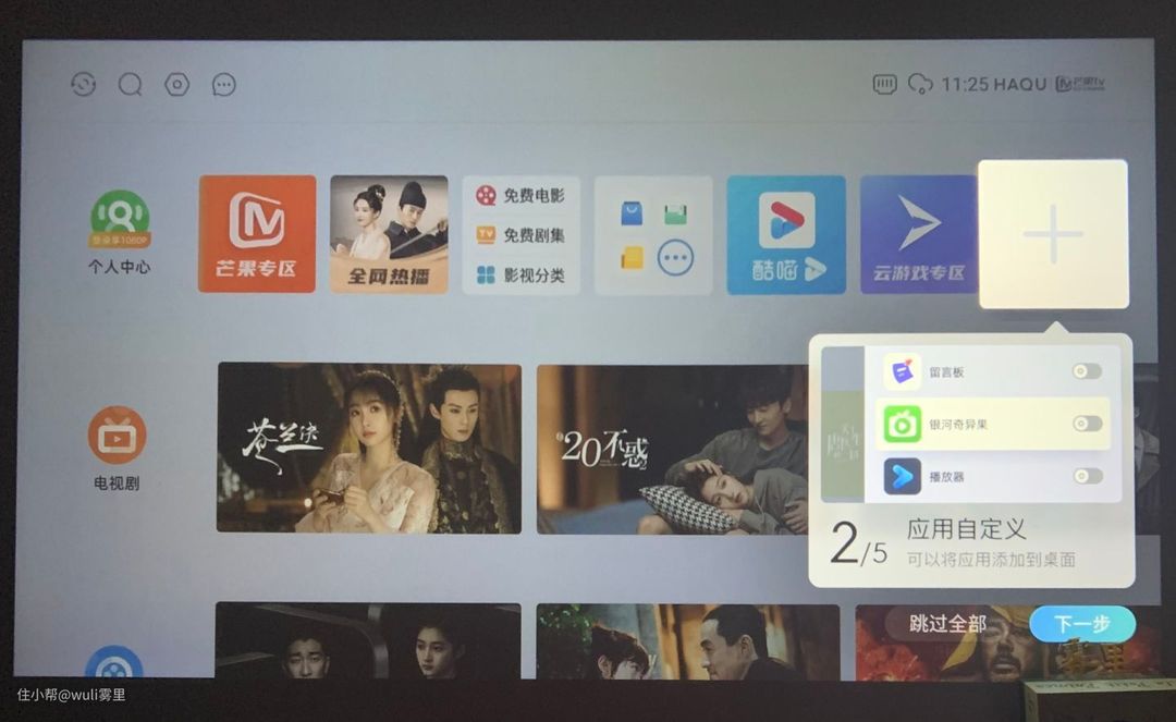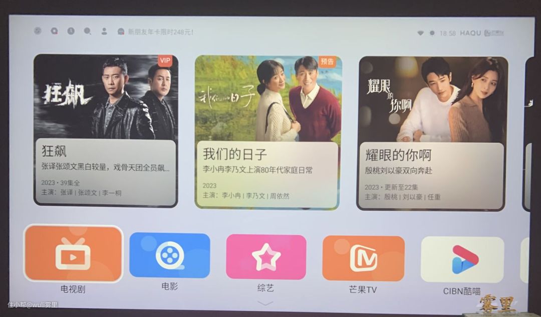 哈趣K1 Pro的系统用的是当贝系统,当贝系统是目前投影仪中相当完善的系统,可玩性很高,模式也多,能同时兼顾青年人、老人和孩子同用。标准模式下就是正常的影视界面,视频源来自芒果,如果想用其它视频源也可以安装: