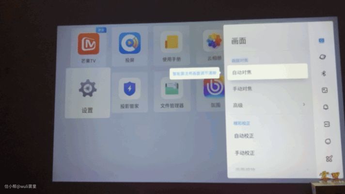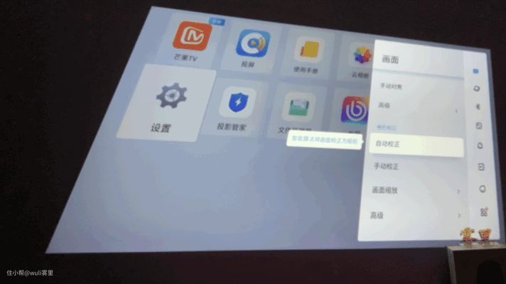 它的梯形校正范围挺大的,在我手动把画面调歪后,选择自动校正后一秒回正。