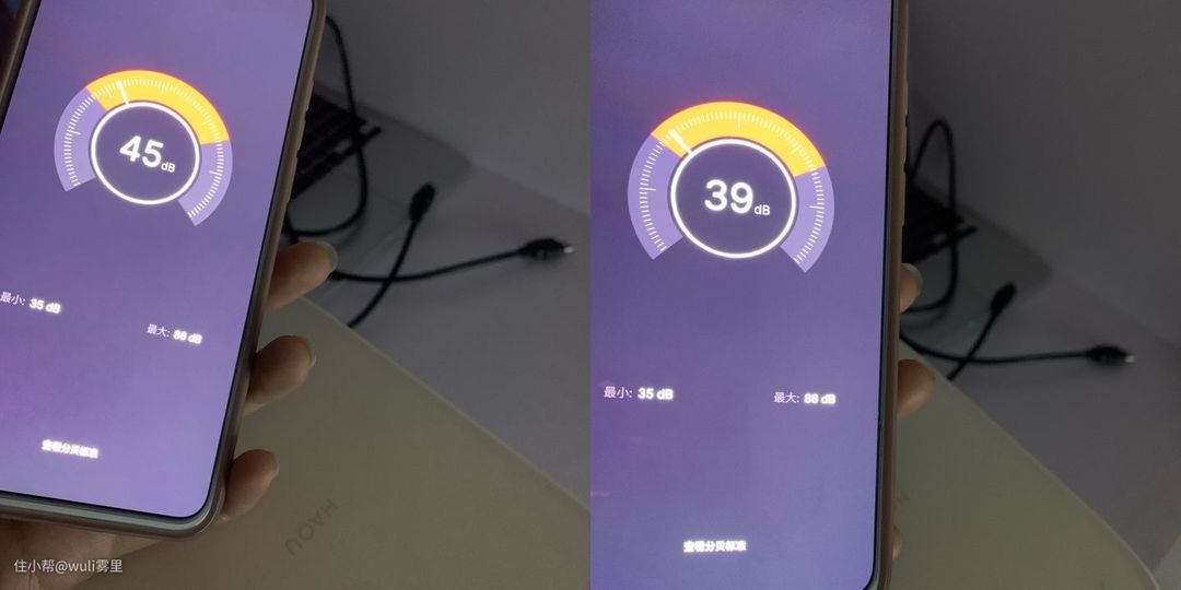 我用手机上的分贝仪简单测了一下,高亮模式下是45分贝左右,常规模式下是39分贝。官方宣传是小于30分贝的,个人认为运行声音可能没有那么小,但也没有我测出来的39分贝这么大。