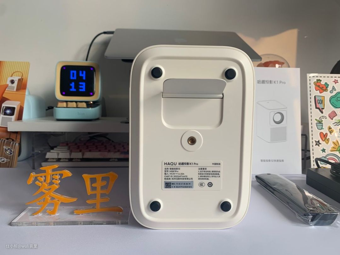 唯一的外观区别就是哈趣K1是冷白色,而哈趣K1 Pro是暖白色,机身有点淡淡的奶黄,显得“胖一点”,其实尺寸和哈趣K1是一模一样的。配件有电源线+适配器+遥控器+说明书,送了两块7号电池是放在遥控器里用的。
