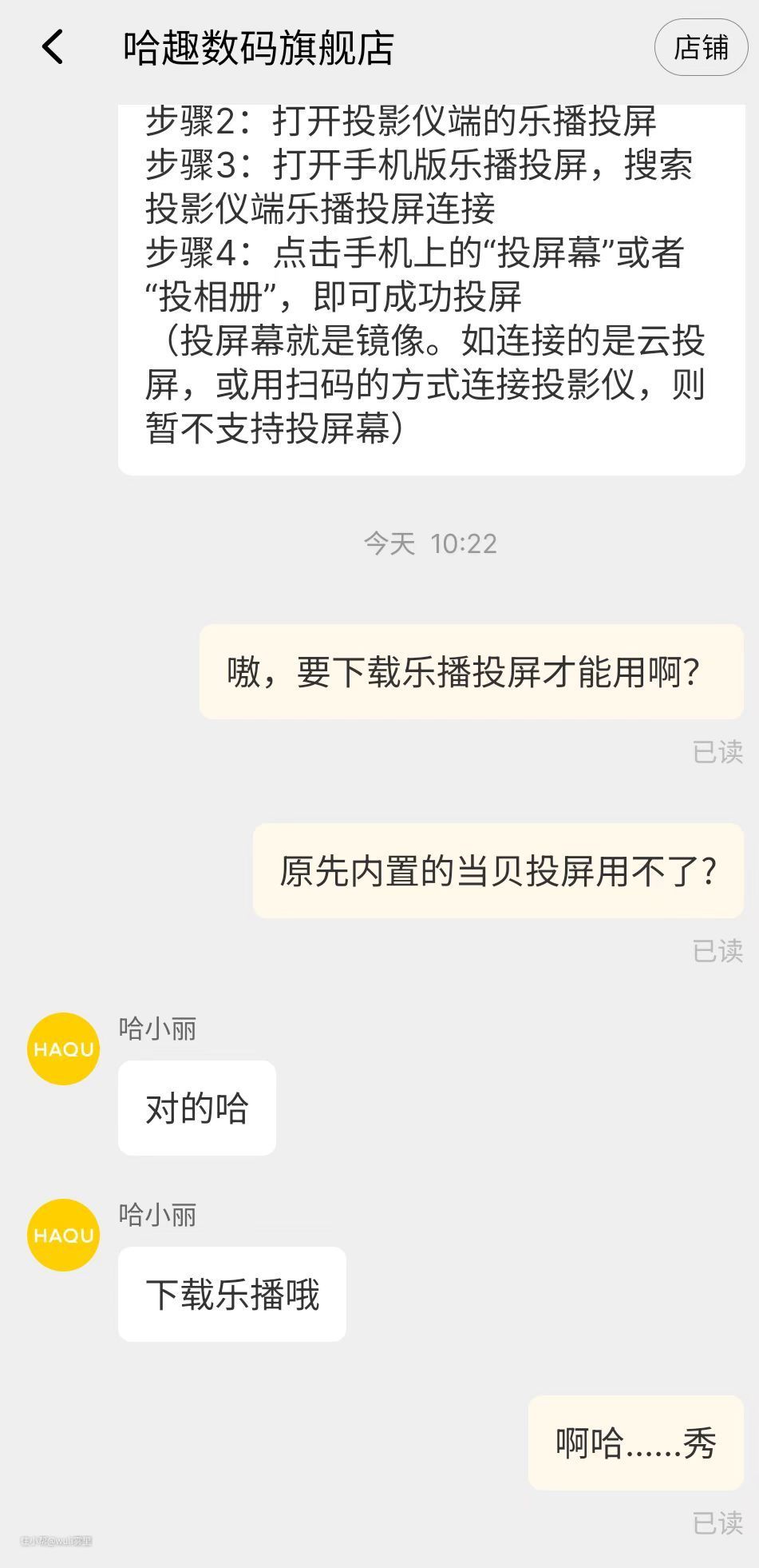 啊哈哈,当贝投屏还要继续努力啊。乐播投屏我以前试过,这次就轻车熟路的下载上用了。小明Q2pro的同屏也是用的乐播,效果非常好,这次哈趣同样选择乐播后,同屏的短板算是给彻底补足了。