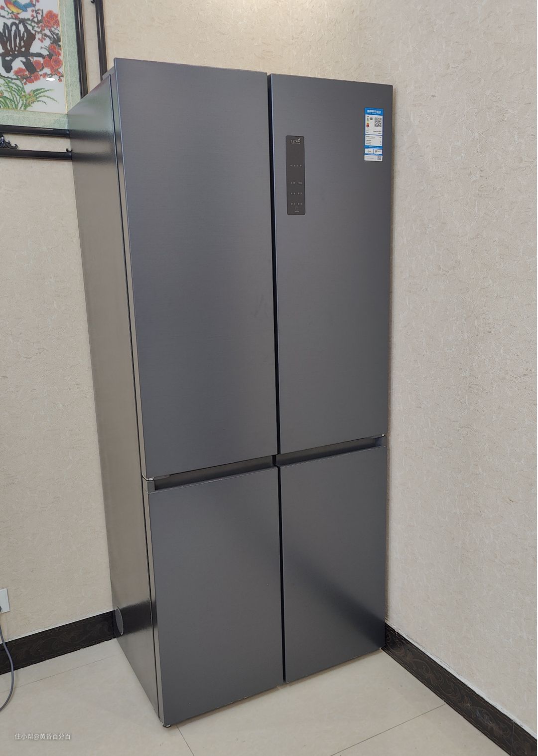 ▲TCL超薄零嵌冰箱T9采用了经典的十字开门布局,正面采用了耐刮擦耐指纹的烟墨蓝配色钢板PCM材质,看上去很高端,尺寸(宽*深*高)为833mm*580mm*1900mm,容量为456L,得益于无需为左右两侧预留散热空间的优势,TCL 薄嵌冰箱T9拥有着930L/㎡的超高容量占地比,更适合在寸土寸金的一二线城市所使用。