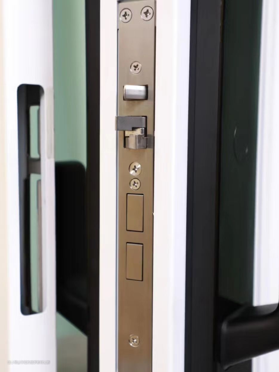 独立反锁舌:出入可上提把手反锁,室内还有独立机械繁琐按钮。