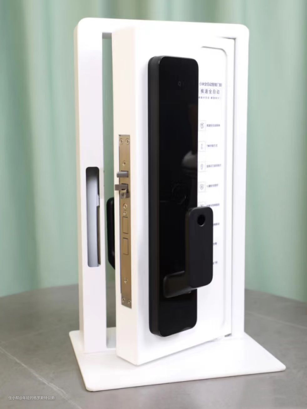 半自动锁体,在解锁以后还有个门把手,我们需要下压门把手,然后才能拉门进入。
