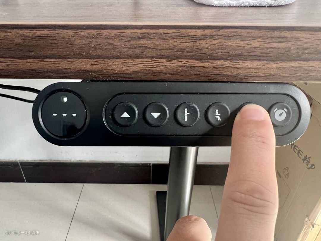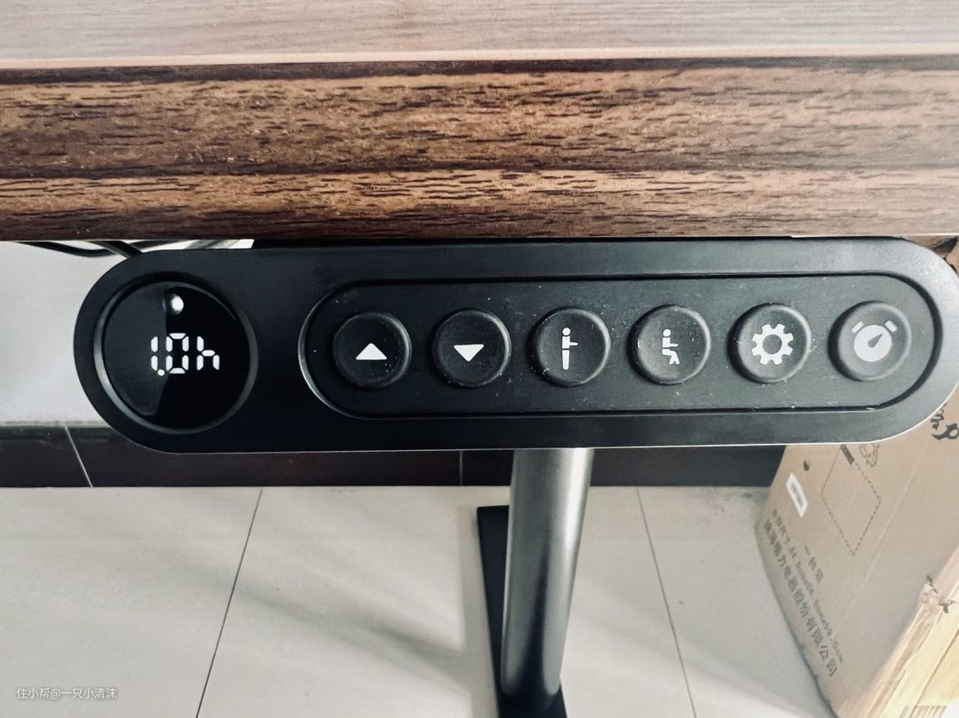 测试了下升降的噪音,大概在52dB,我坐在电脑桌面前升降的噪音刚好,把书房门关住,坐在客厅完全听不到电机工作的噪音。