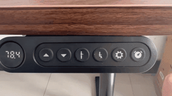 北弧M1双电机升降桌有一个物理按键的一键站姿的功能,当我们坐着累了,可以直接一键把桌子升降到适合我们的高度。
