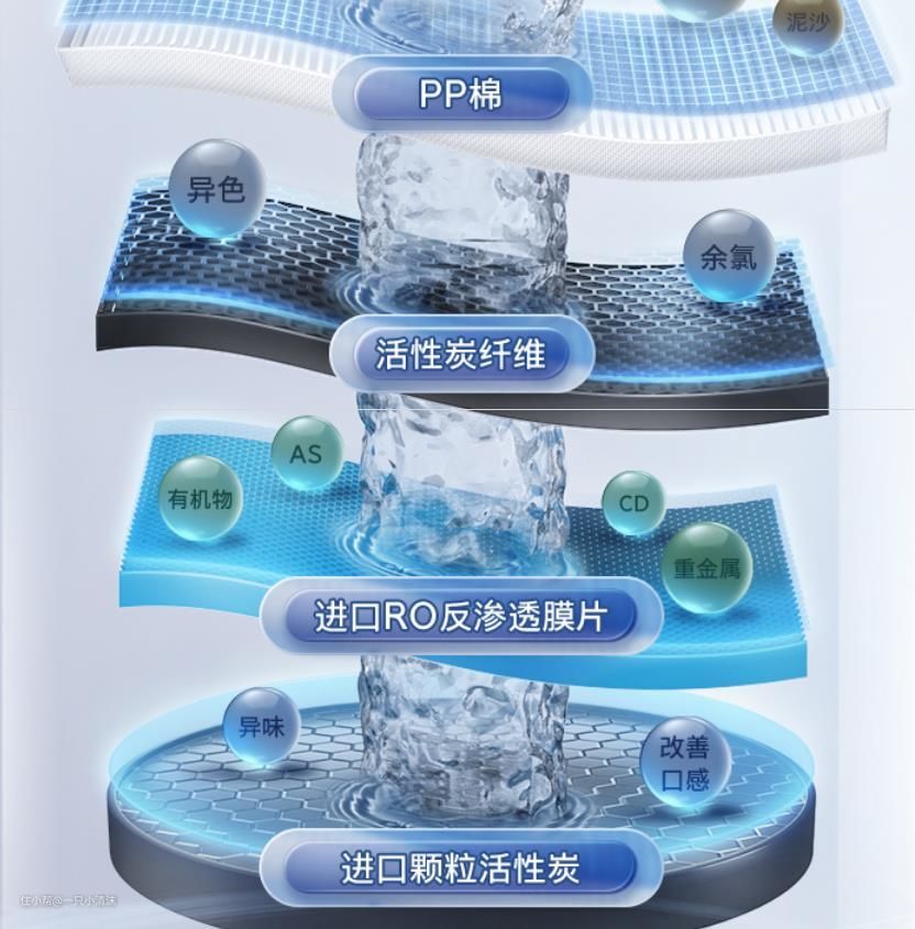 这台卡赫1000G大通量净水器我也特别心动,准备以后我的大平层装修好了就给厨房配备上,流量大,每分钟制水可以达到2.6L,畅快的大水流接水真是不用等很久。机身设计也很用心,立着放横着放都可以,安装起来完全不受限制。它的内部具有PP棉、活性炭纤维、进口RO反渗透膜、进口颗粒活性炭,通过这四层过滤,可以有效去除水中的杂质、余氯,重金属去除率达100%,出水更加纯净安全。