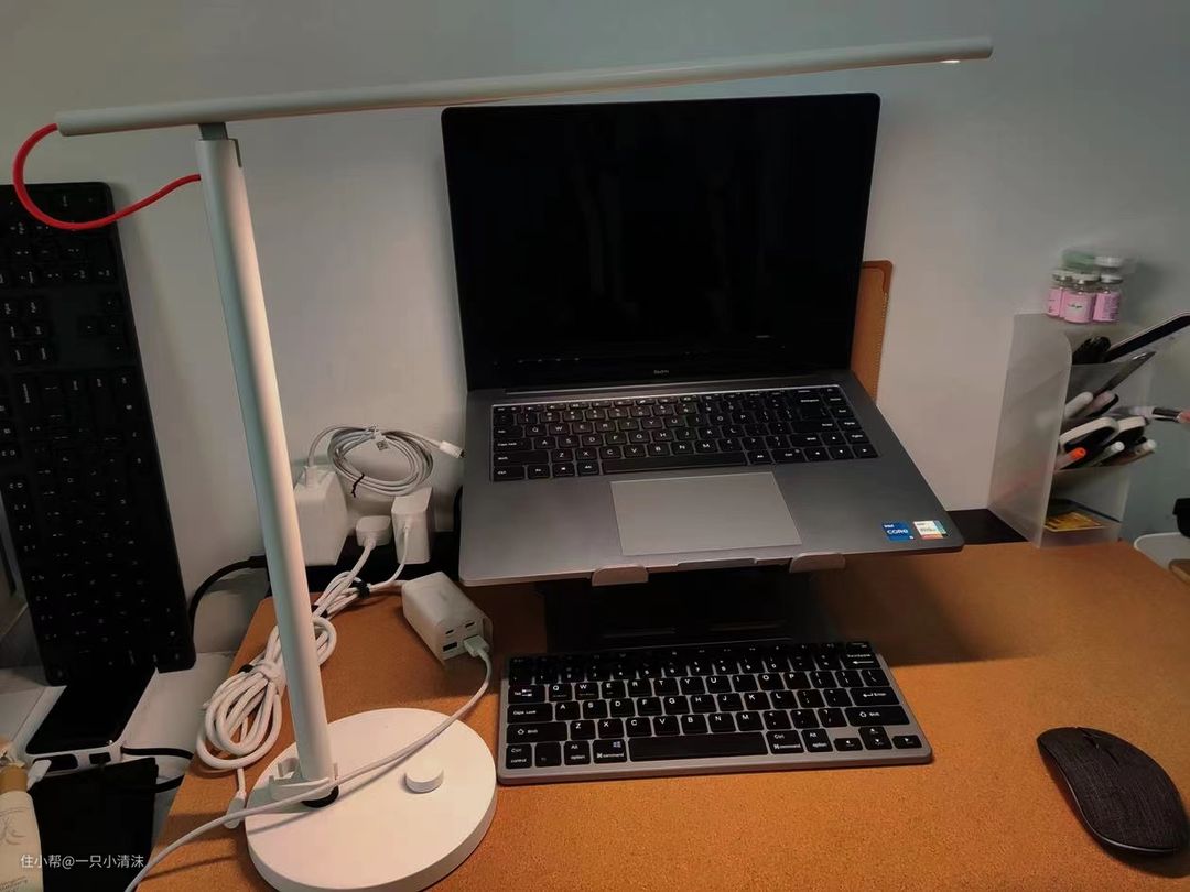 从它的外观上,就能瞧出端倪,发光面板要比普通台灯都要大一些,照射出来的光线可以覆盖我的整个桌面,写字工作台上几乎没有昏暗的角落,手放在任何一个角落都没有重影。