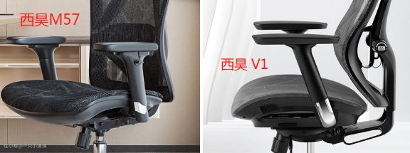 扶手:综合表现 V1>黑白调E3高配>M57>黑白调E3中配、标配,但对承接手臂而言升降功能,几种类型可调节范围均为8cm。