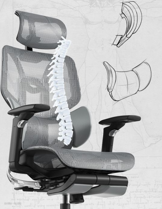 工学椅护腰的原理简述起来很易理解,坐姿状态上身承力区域是自第一腰椎开始到骶骨之间,如果没有腰靠或者外部支撑点不对,那么腰椎会坚守职责承担上身重量,久坐就会造成腰椎间盘突出、脊椎周肌肉酸胀,连带着腰侧肌肉劳损,严重甚至会导致炎性代谢产物的堆积引发水肿刺激末梢神经,痛到影响人的正常生活。