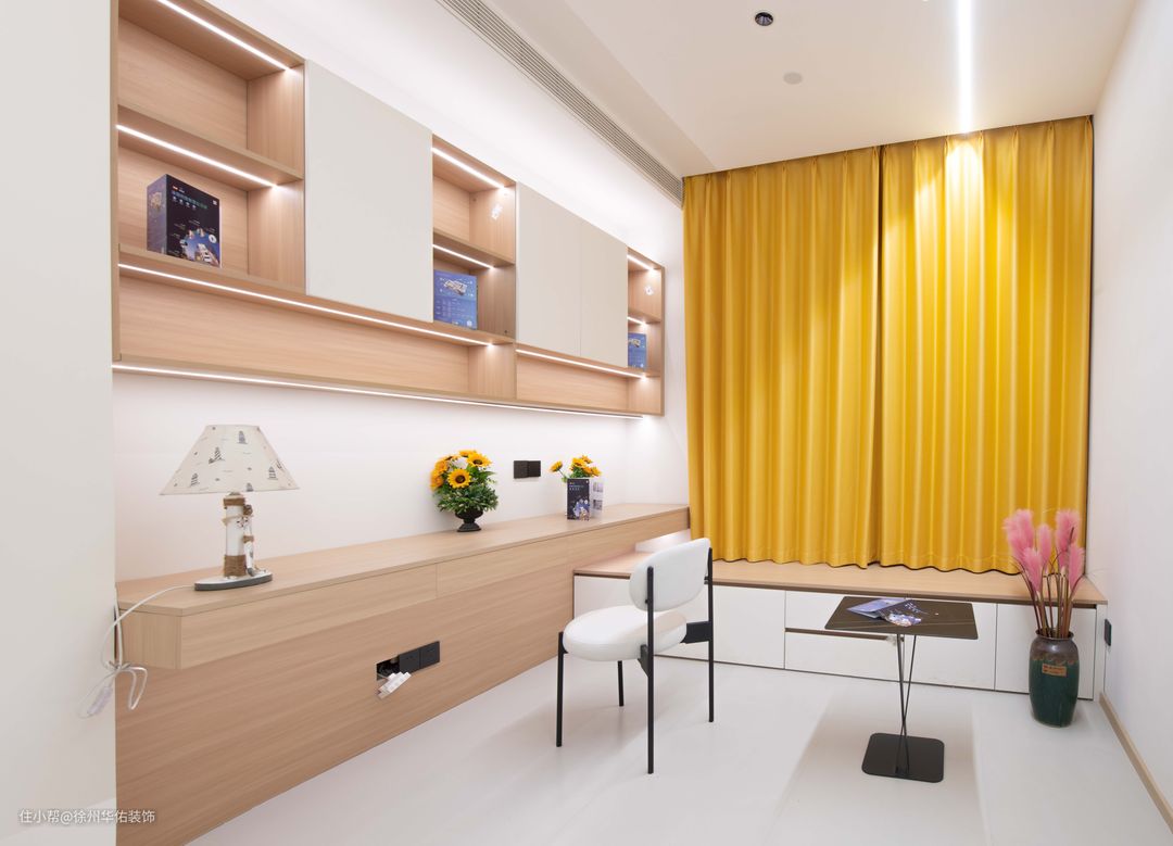 另一个次卧作为多功能房间,根据业主的需求进行改变,可以改为书房,也可作为一个独立的卧室,或者亲子空间,奶白+亮黄色清新活力,和孩子在家就能开心的玩耍!