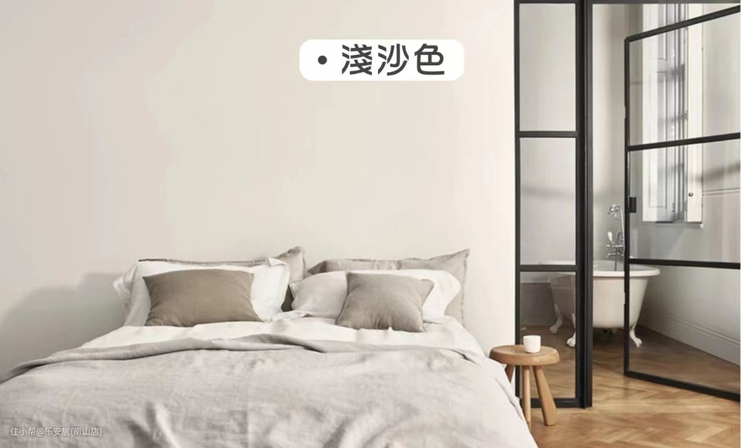 4、浅沙色 30YY 78/035 常用于采光弱或一般的暖感空间,如果房间采光好或正常,浅沙色有可能效果不明显,建议涂刷浅滩银珠 30YY 69/048效果会更好。