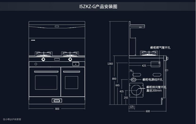 要注意集成灶与橱柜之间的高度。定做橱柜时,就需要注意橱柜台面与集成灶台面高度保持一致。森歌集成灶台面的高度统一为810mm,深度统一为600mm,所以做橱柜时高度和深度也要统一为810mm和600mm,预留的宽度要根据不同型号的集成灶而定。此外,如果需要安装顶柜设计的话,集成灶置物台与顶柜间距离最少为30cm。预留的宽度要根据不同型号的集成灶而定,以森歌集成灶i5ZKZ-G为例,集成灶的宽度为900mm,建议预留905mm的宽度,多出来的空隙方便产品安装与维护,橱柜与集成灶的间隙可以用压边条做到无缝安装。
