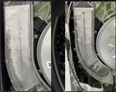 这样的好处是,毛屑过滤效果很直观,但是每次烘干完毕都需要手动清理滤网。