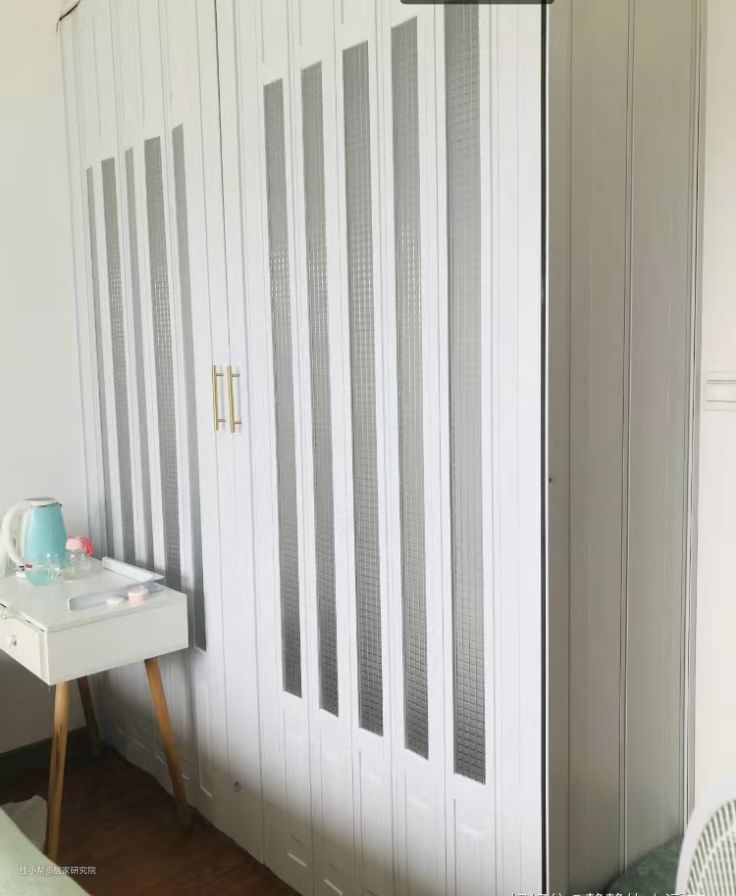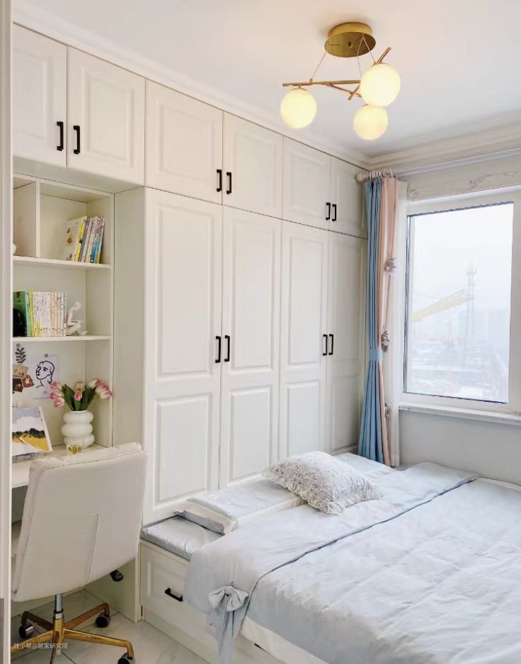 2.根据卧室空间确定柜门开合方式,趟门省空间、平开门方便查找。