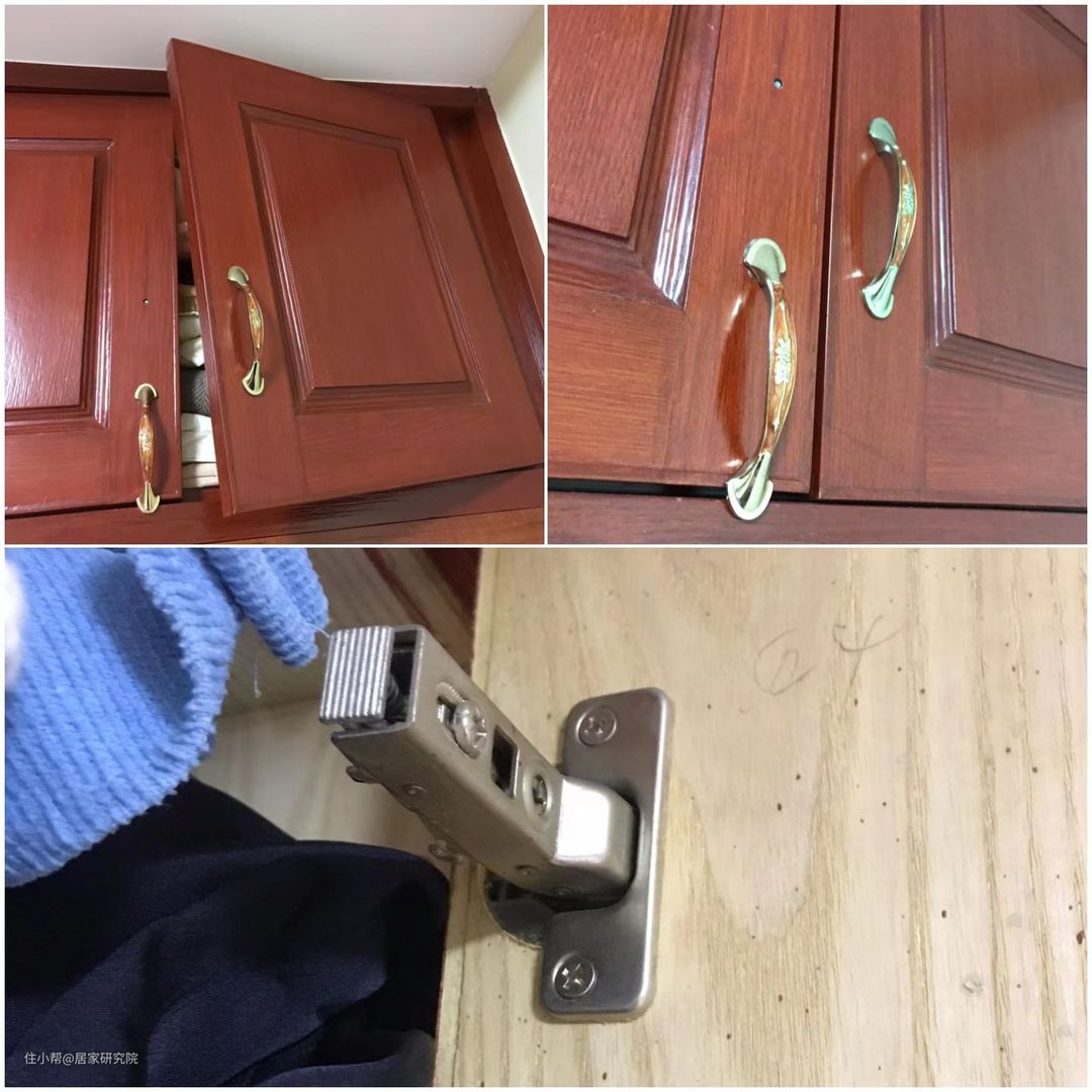 ②看五金件 五金件的好坏直接关乎衣柜的耐用程度!门铰、按压器、抽屉导轨、衣通、拉手这些都是五金件。用材是否扎实、导轨是否顺滑都要上手去体验。 不然用几年就是这个下场:合页松动、把手脱落...随时感觉这个门会掉下来要了我狗命...