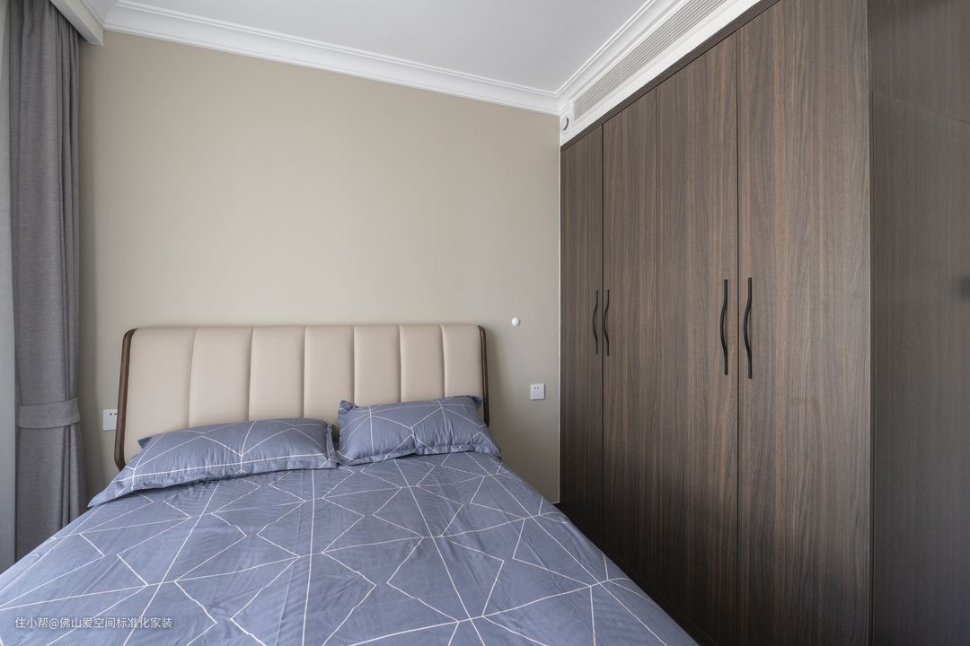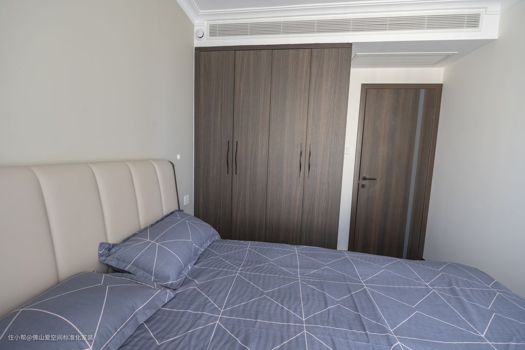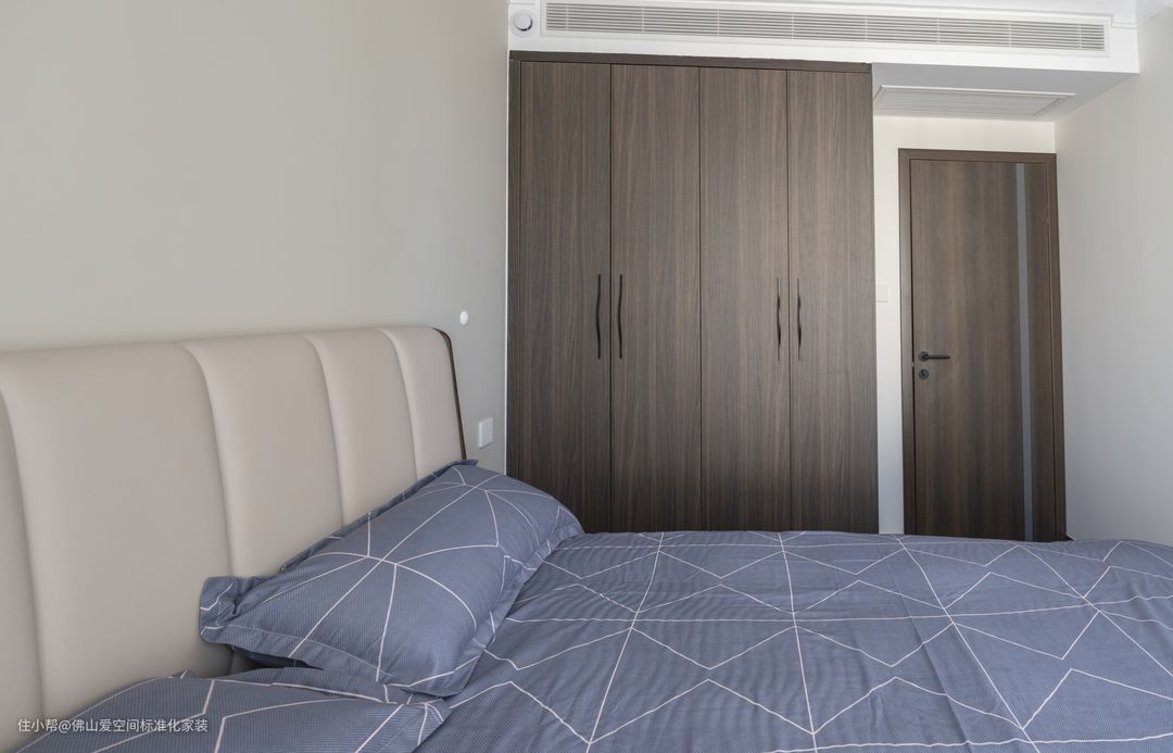 牡蛎色墙面搭配胡桃色定制家具,适合男生的小清新卧室设计