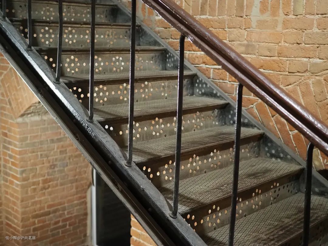 铁艺楼梯大多是黑色或者深灰色,比水泥楼梯、岩板楼梯看起来轻巧,但也相对没有那么精致,有一种粗粝,古朴之美。