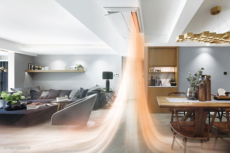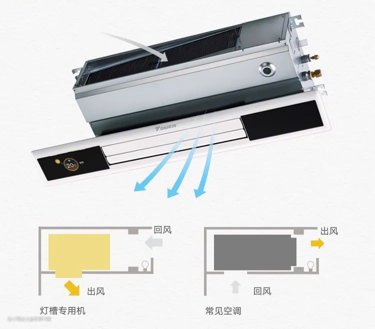 例如选择一款灯槽专用的室内机,从下部出风侧面回风,留给吊顶更多灯带可能性,功能美观一步到位。