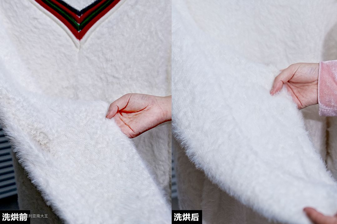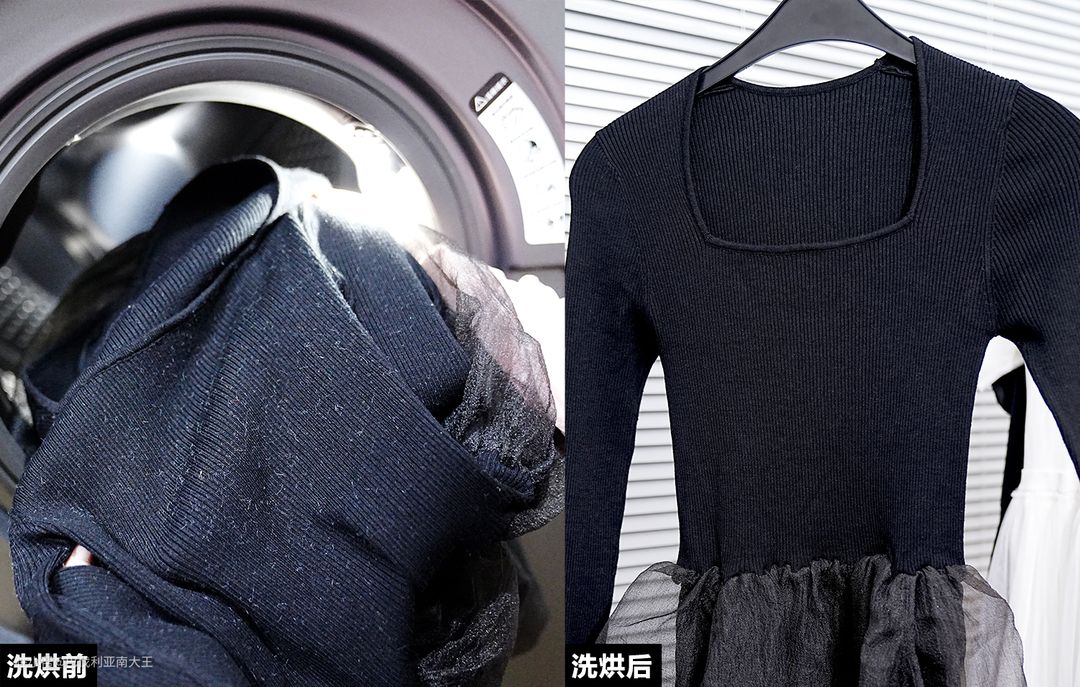 我在洗烘前还用卷尺分别测量了真丝连衣裙和羊毛外套的长度,洗烘后尺寸真的一点没变,以后可以放心在家机洗了。