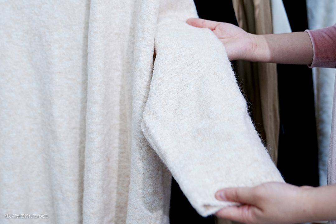 羊毛外套洗烘悬挂后,也完全没有任何缩水变形现象,质地依旧厚实柔软。