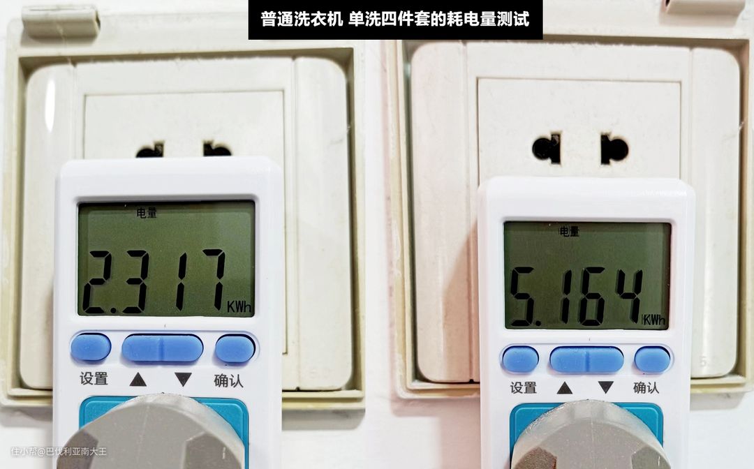 没有对比就没有伤害,这是我家之前那台被淘汰的洗衣机,不带烘干功能,光单洗一次四件套的耗电量,就高达2.85度电,比石头H1的洗+烘还费电。而且它的容量还小,四件套需要分两次洗,就更不划算了。