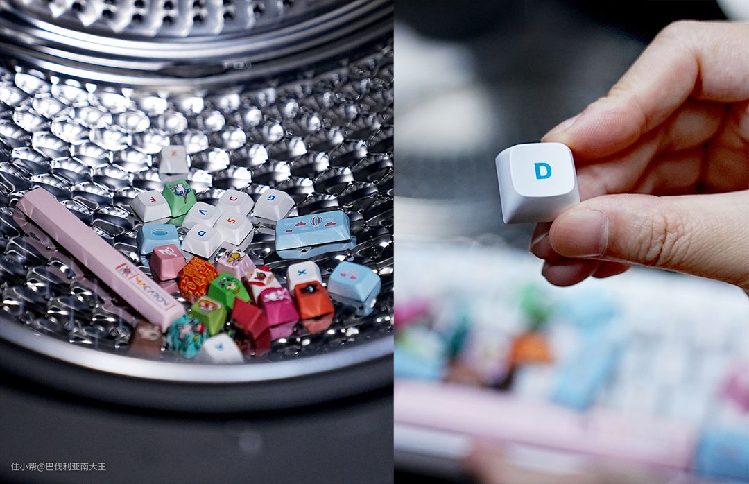 另外我还偷偷挖掘了一个新用法,直接把机械键盘洗烘了。扔进去因为分子筛低温烘的方式,不用担心键帽被高温烘变形褪色,是不是很给力!实测洗烘的还是很干净的!