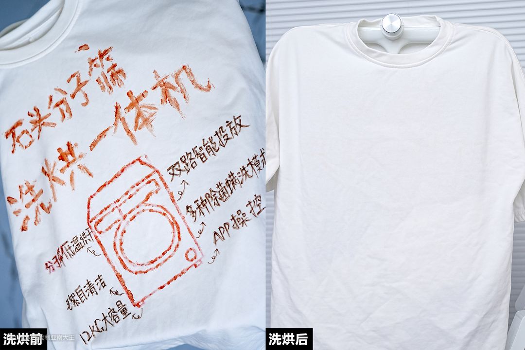 用番茄酱和签字笔做极限测试的白T,没想到也是轻松搞定,洗涤效果还是相当不错的。