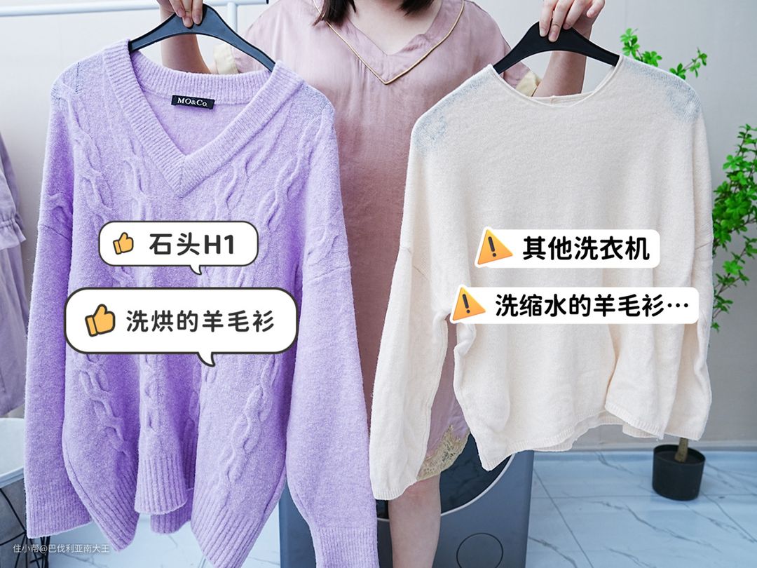 使用石头H1一个多月了,它真的改变了我对洗烘一体机的刻板印象,原来羊毛和真丝材质的衣物也可以一步到位。