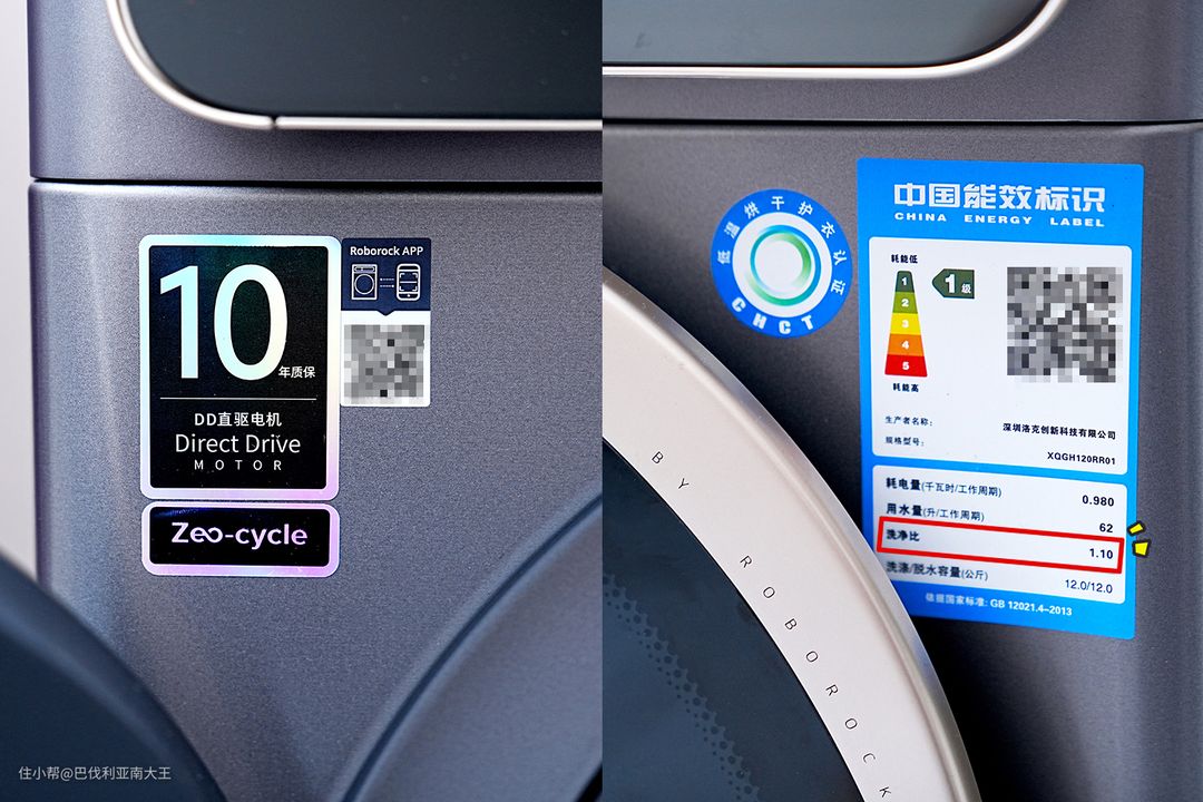 像滚筒洗衣机国标洗净比是1.03,而石头H1的洗净比高达1.1,远超国标。另外它还使用了响应速度更快、传动效率更高、噪音更小、能耗更低的DD电机。