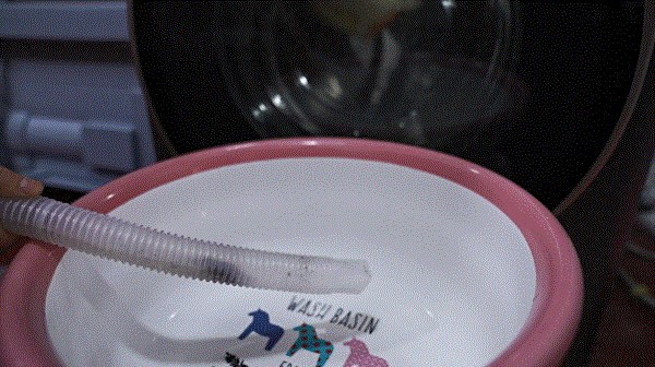 为此我还特意买了根透明管道做测试,我把它接在洗衣机下水管,然后透明管道模拟下水道。在洗烘完沾满好多毛的衣物后,我选择单脱水模式,动图中可以看到带毛的水全部从下水管排出,丝毫没有堵塞管道。