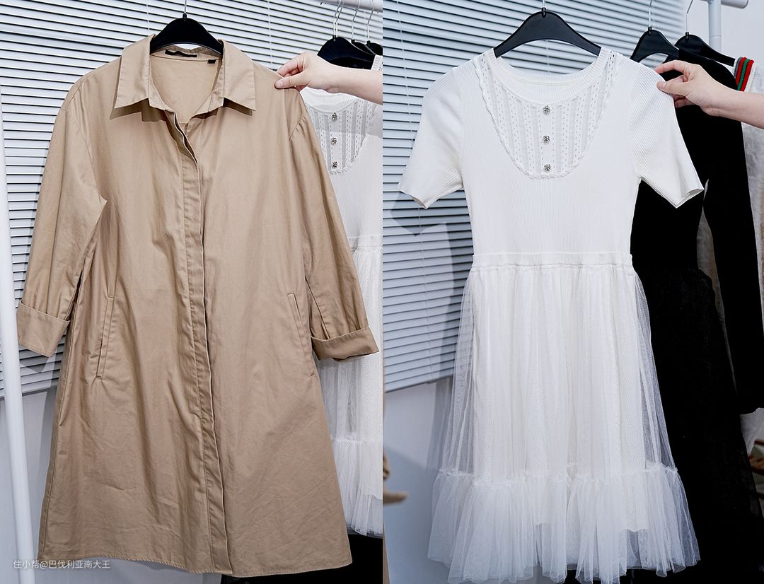 烘干衣物也同样,洗烘时都是一比一正反转,烘完不能说一丝褶皱没有,但像图中这种风衣、连衣裙、普通T恤之类,几乎没有死褶,拿出来抖一抖,都是可以直接穿出门的。