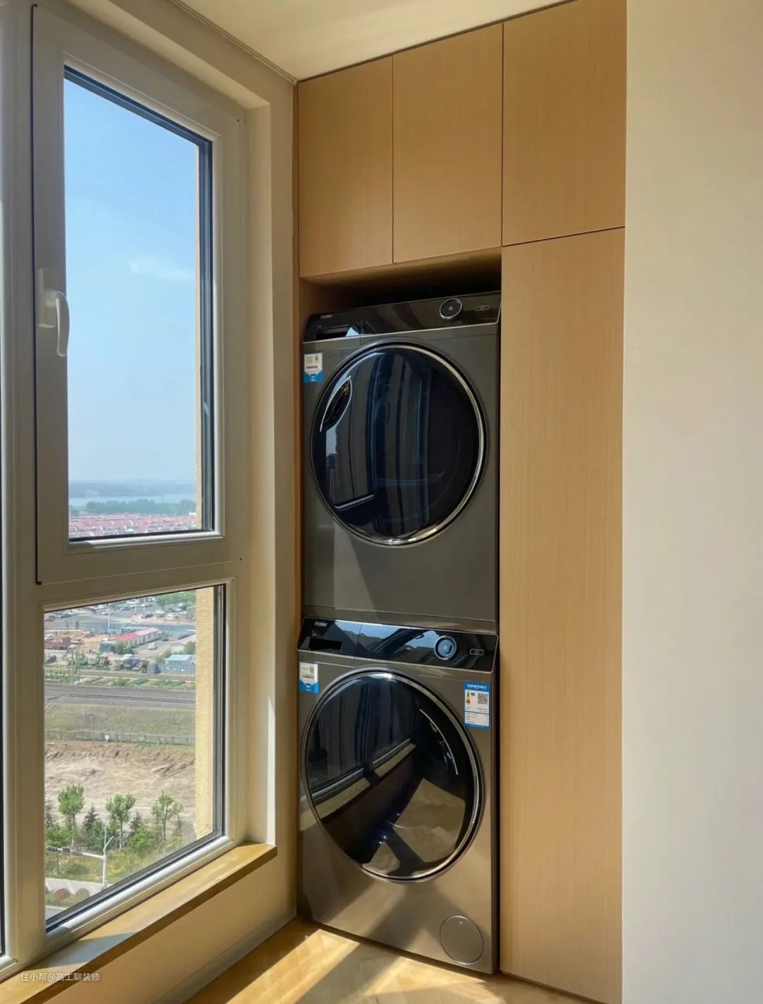 如果家的生活阳台区域空间比较大,又打算不想晾晒衣物的话,可以考虑洗烘套装,虽然价格高出了普通洗衣机,但是它彻底解决了双手洗衣机的问题。
