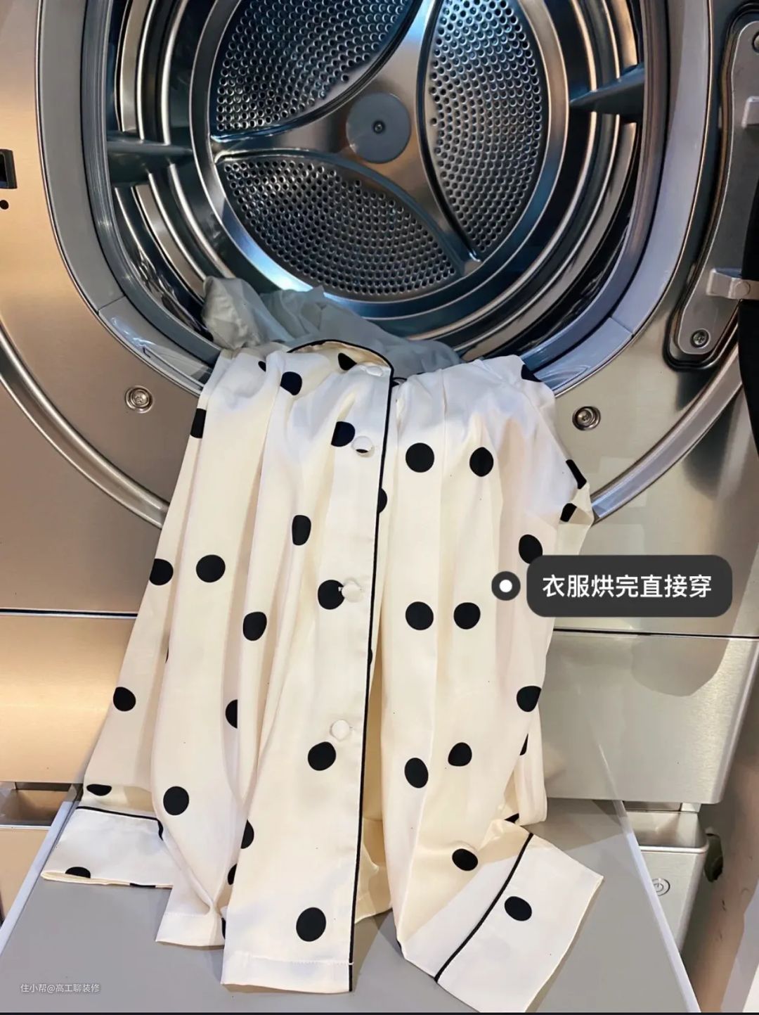 还具备干洗的功能,干衣机是通过新风循环,能够带走衣物上的异味,比如吃烧烤和火锅油烟味还有身上的烟酒味,不需要用水洗,就能够让衣物保持清新靓丽。
