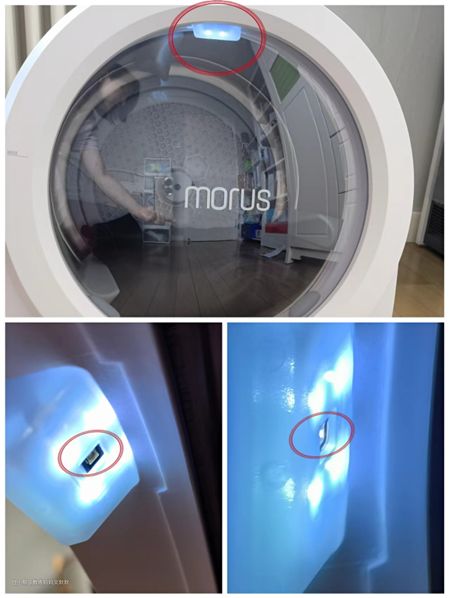 除菌模式对于目前的疫情环境相当友好,人堆里扎过又懒得洗衣服的,外套直接丢进去除菌就好。机器舱门上就个UV紫外灯,紫外灯外围有4颗灯珠(左下图),一旦除菌模式开启,灯珠中间的紫外灯(右下图)就会亮起。开始消杀的一瞬间,心理上立马就踏实了。