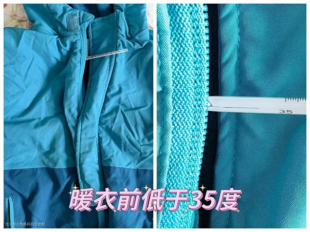 上面我用了最传统的方法体温计来进行测试,外套拿出来前是低于35度的,开了5分钟暖衣后直接到了37.2度。而且是里里外外摸着都暖暖的特别舒服!